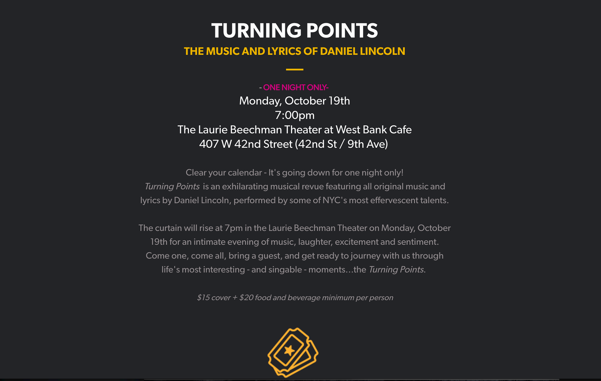 Logo and splash page design promoting a musical showcase by composer/lyricist Daniel Lincoln.
