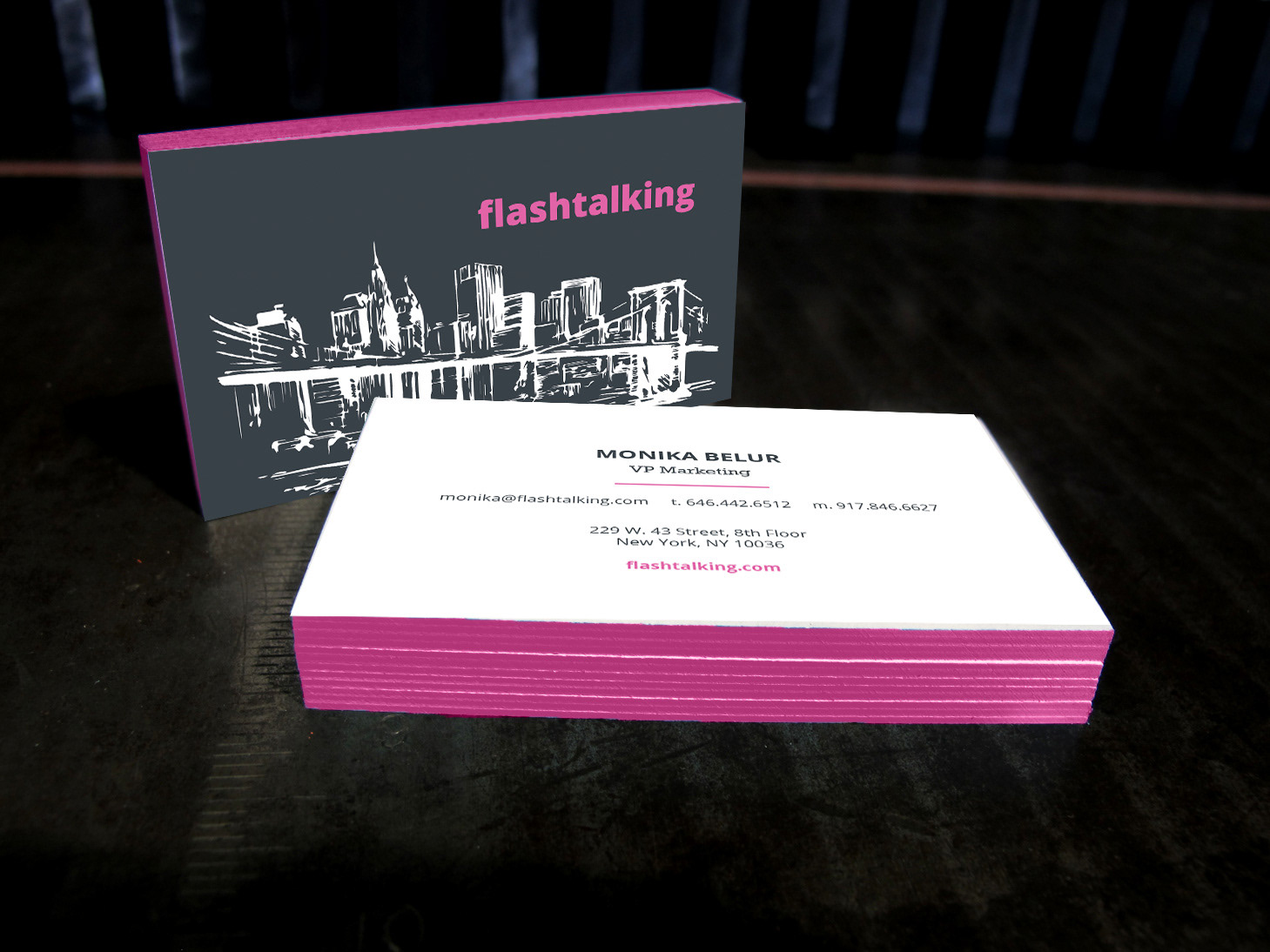 Business card design & mock-up for Flashtalking, a digital advertising company.